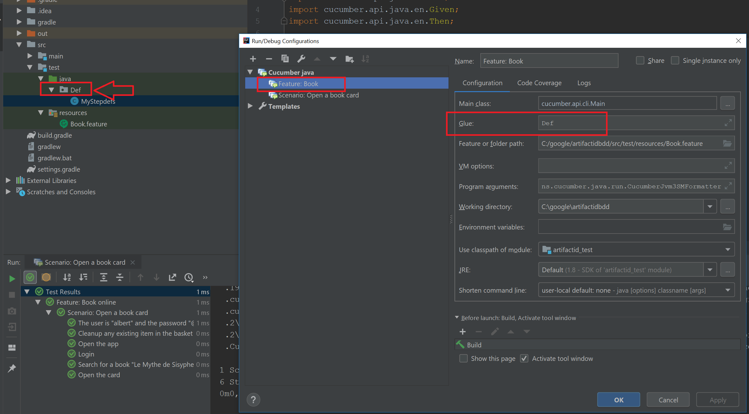 2. Add the feature file Book.feature. Pay attention that the file has been added inside the folder resources of test